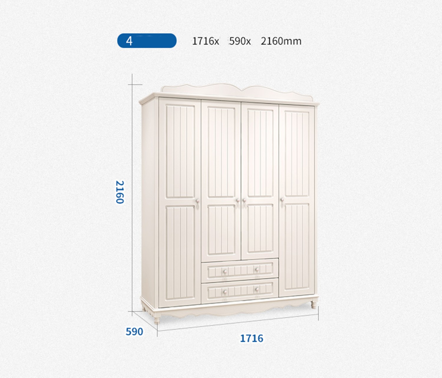 1) خزانة 4 أبواب : 200*62*171 سم