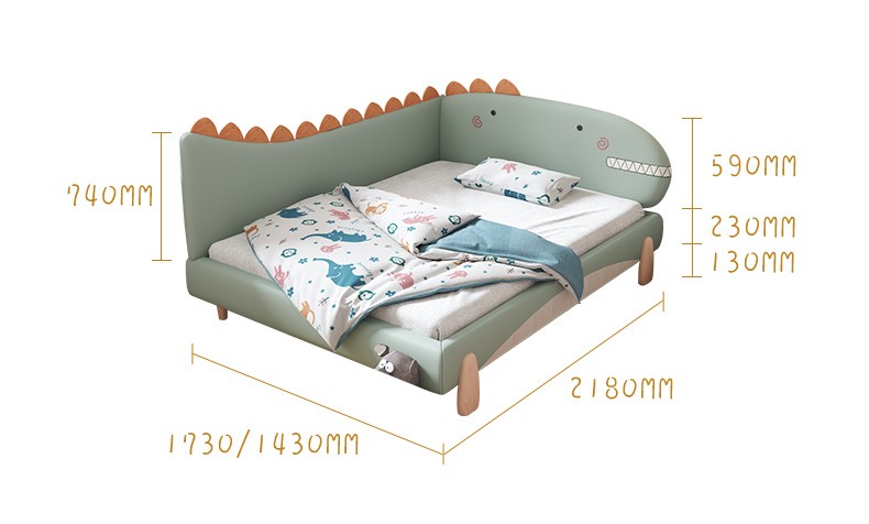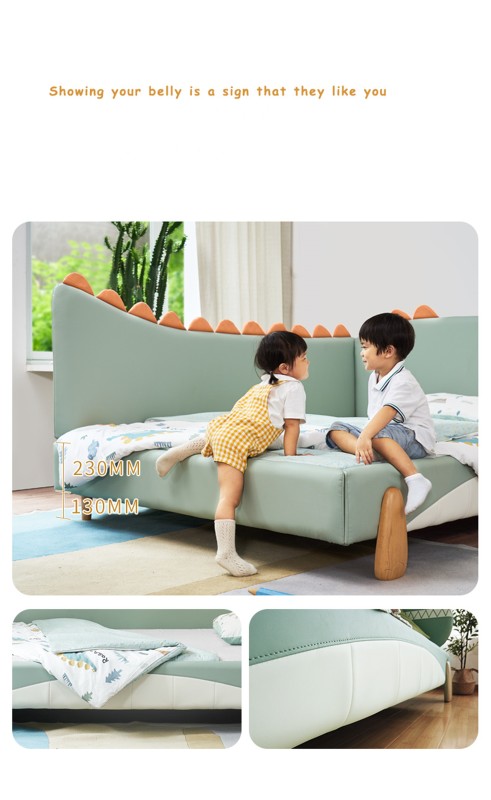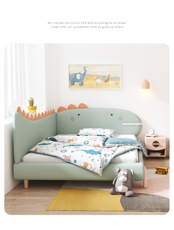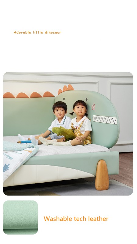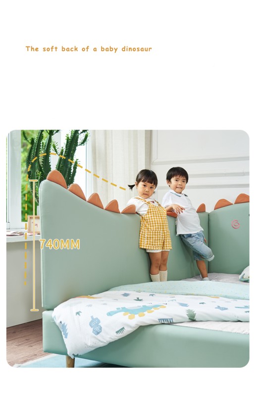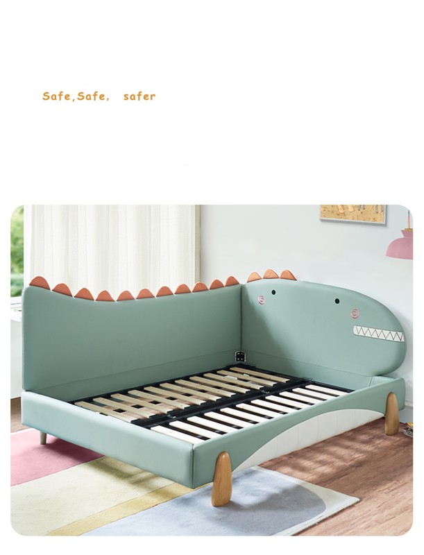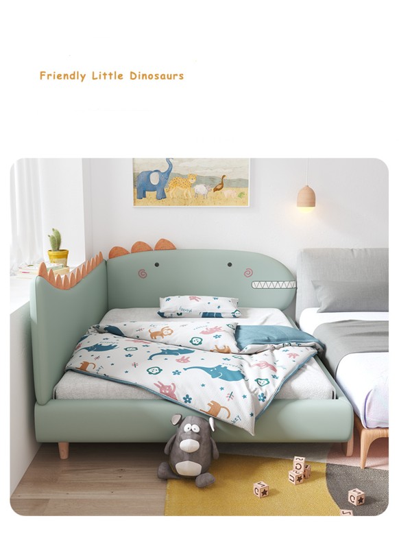 سرير ديناصور سرير أطفال من الخشب الصلب سرير جلدي ناعم للأولاد والبنات سرير خياطة درابزين سرير متين ذو جودة عالية